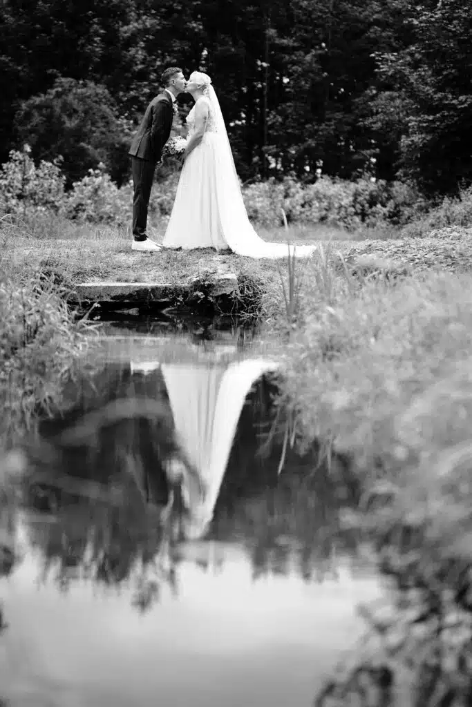Kurz nach dem Shooting zog ein heftiger Schauer auf, doch wie durch ein kleines Wunder verzogen sich die Wolken rechtzeitig zur Trauung. So konnte die freie Trauung unter freiem Himmel stattfinden – persönlich, emotional und einfach wunderschön.